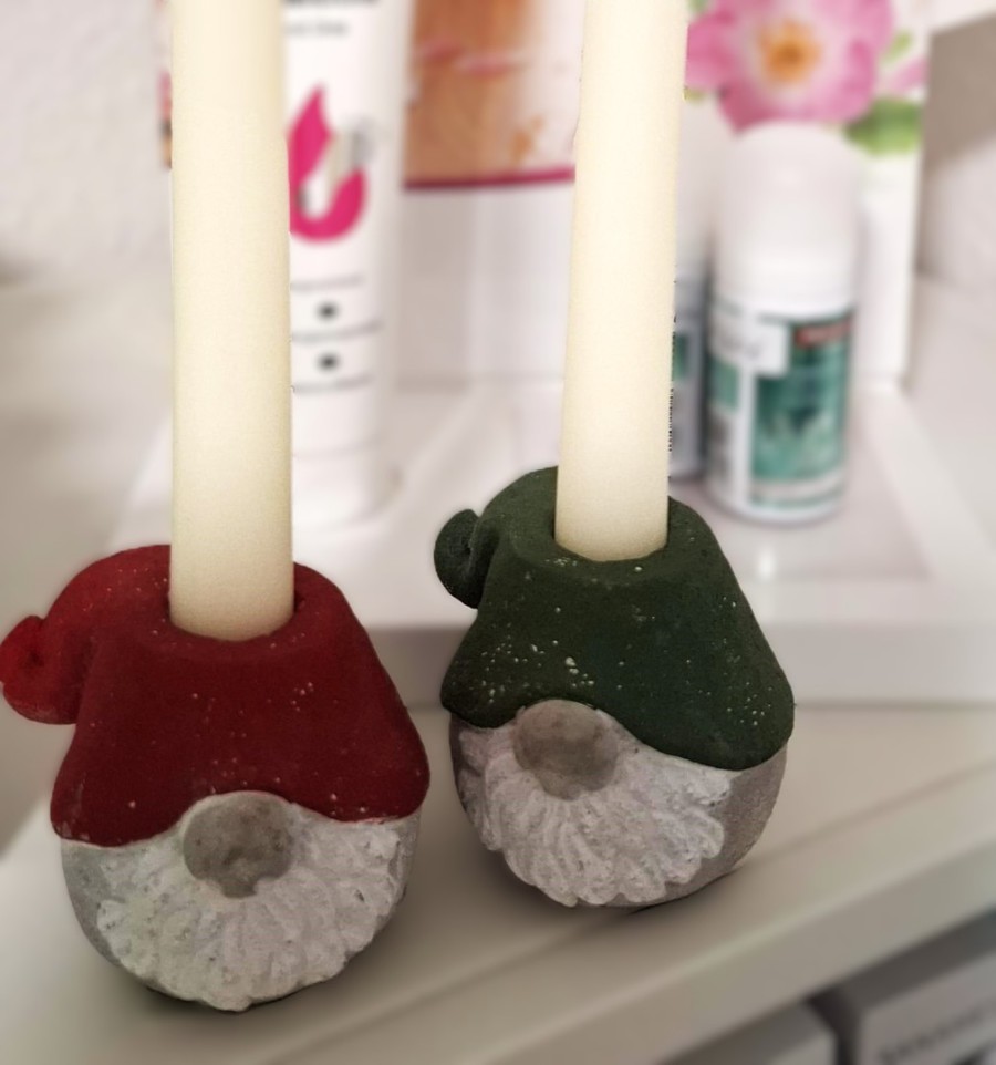 Weihnachtswichtel-Kerzenhalter, rot oder grün